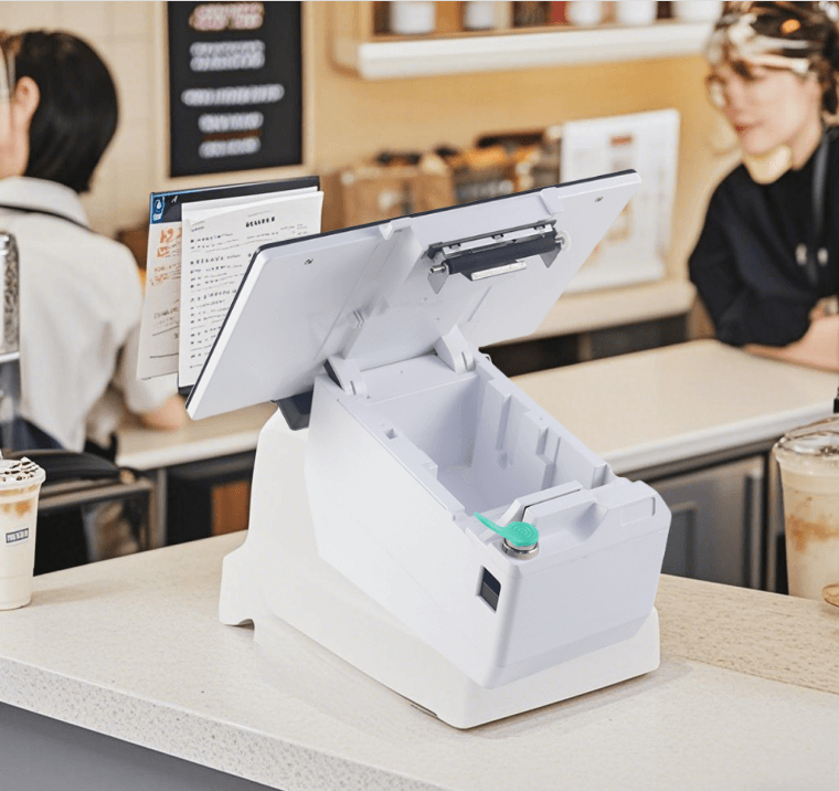 Esta opción es popular porque ofrece un punto medio sólido. Tiene un aspecto moderno, ahorra espacio en el mostrador y ofrece muchas de las mismas funciones de POS que una configuración más grande. También funciona bien para empresas que desean una caja registradora con pantalla táctil sin comprometerse con hardware más pesado.